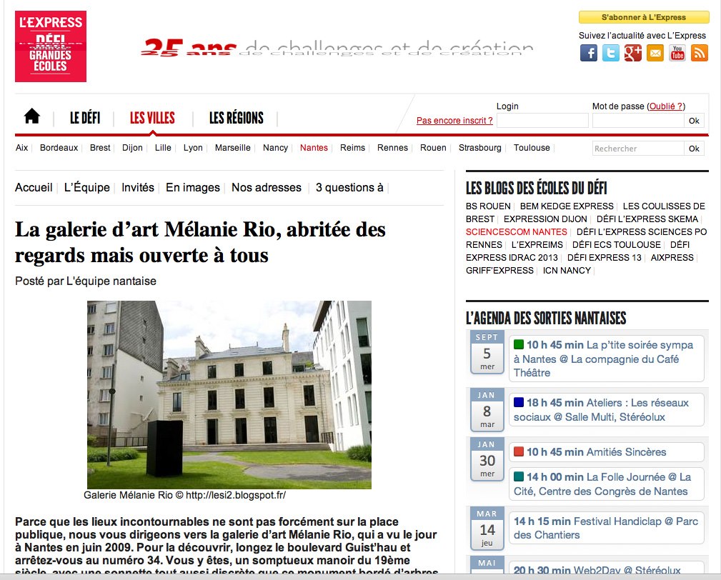 Je suis en stage depuis 1 mois au sein de la seule galerie d’art contemporain privée de Nantes, la galerie melanieRio.