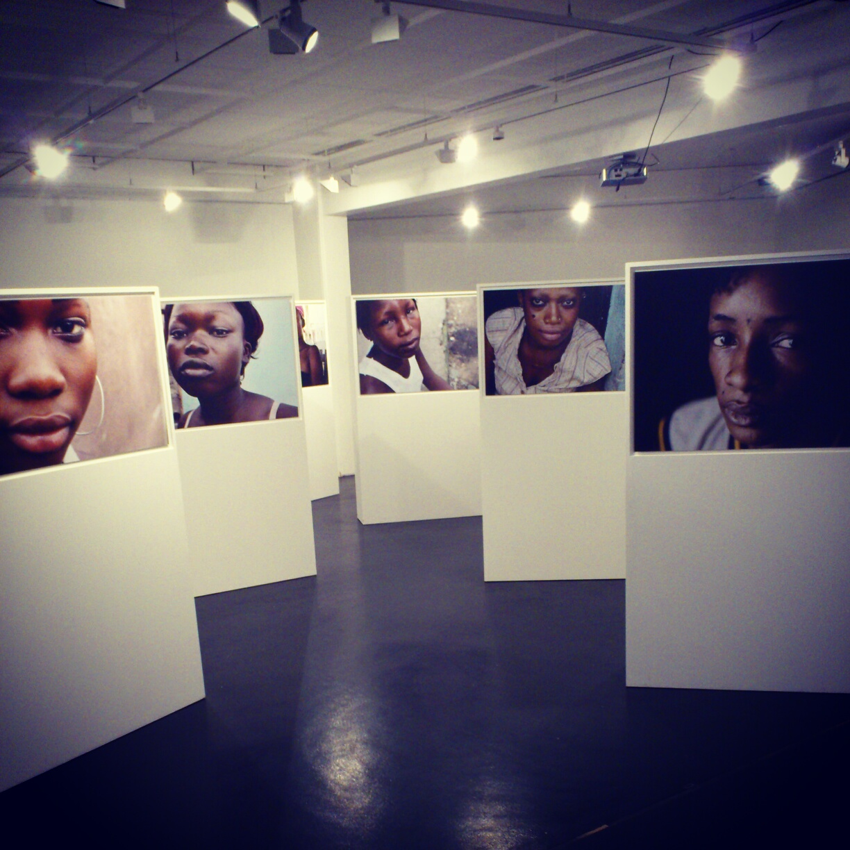 Des visages en gros plan, du noir en couleur. Paréos, piercing, cheveux colorés, tatouages. Elles se lavent en pleine rue, avec de l’eau que nous pouvons imaginer peu portable. Elles se font des masques, fument, se maquillent comme elles peuvent. Je suis marquée par la pauvreté, le paysage meurtri, mais je peux visiter, outre des rues sans vies, une féminité exploitée. Ces femmes me regarde fixement, m’oppresse de leur expression. Cette réalité dérangeante, si loin de moi, me fait face et m’interroge. Tout est une question de regards au sein de cette expostion. Qu’y a-t-il de plus percutant qu’une confrontation? Des yeux fixement plongés dans les nôtres? Entre les photos, des citations et des témoignages, comme celui de Mélissa: