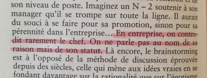 « Les managers préfèrent les contrôles et les process à l’autorité assumée ». Je ne peux que le confirmer. Que ce soit moi ou mes proches : les process rassurent et évitent aux personnes (pourtant « responsables ») d’assumer d’éventuelles prises de risque. Est-ce normal ? Cela ne me le semble pas. Et le courage ? Le livre relate beaucoup cette notion.
