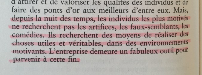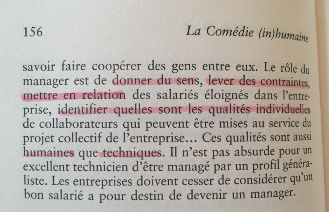 Si je reviendrai sur cet ouvrage, et plus amplement sur le management mis en parallèle avec mes observations et expériences, je vous laisse sur ma prise de notes et quelques citations. J’ai aussi usé de mes stabilos, comme vous avez pu le voir avec quelques captures.