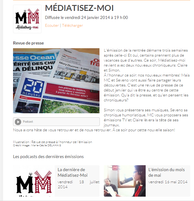 🎙️ La dernière de Médiatisez-moi – Diffusée le vendredi 18 juillet 2014 à 19h00