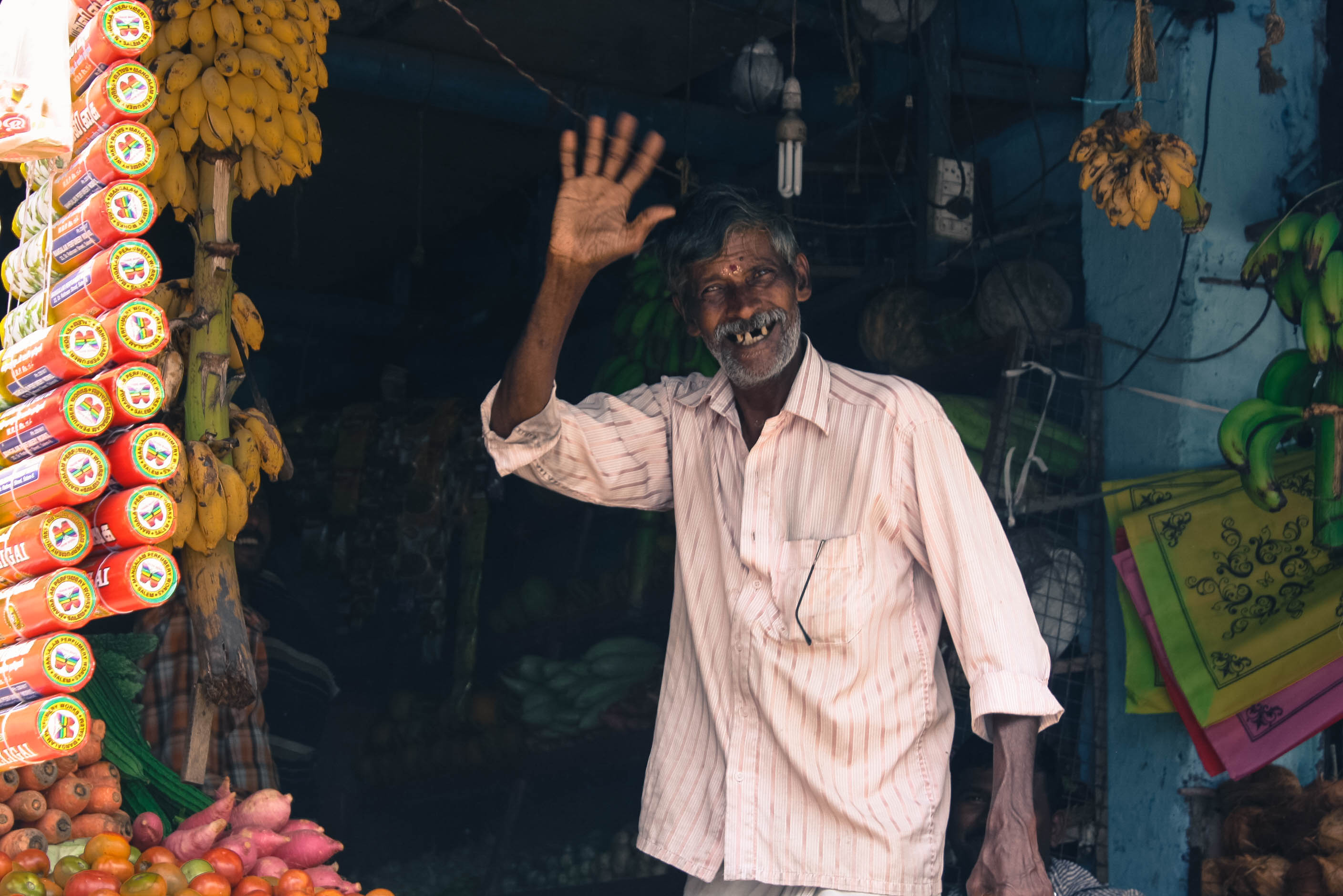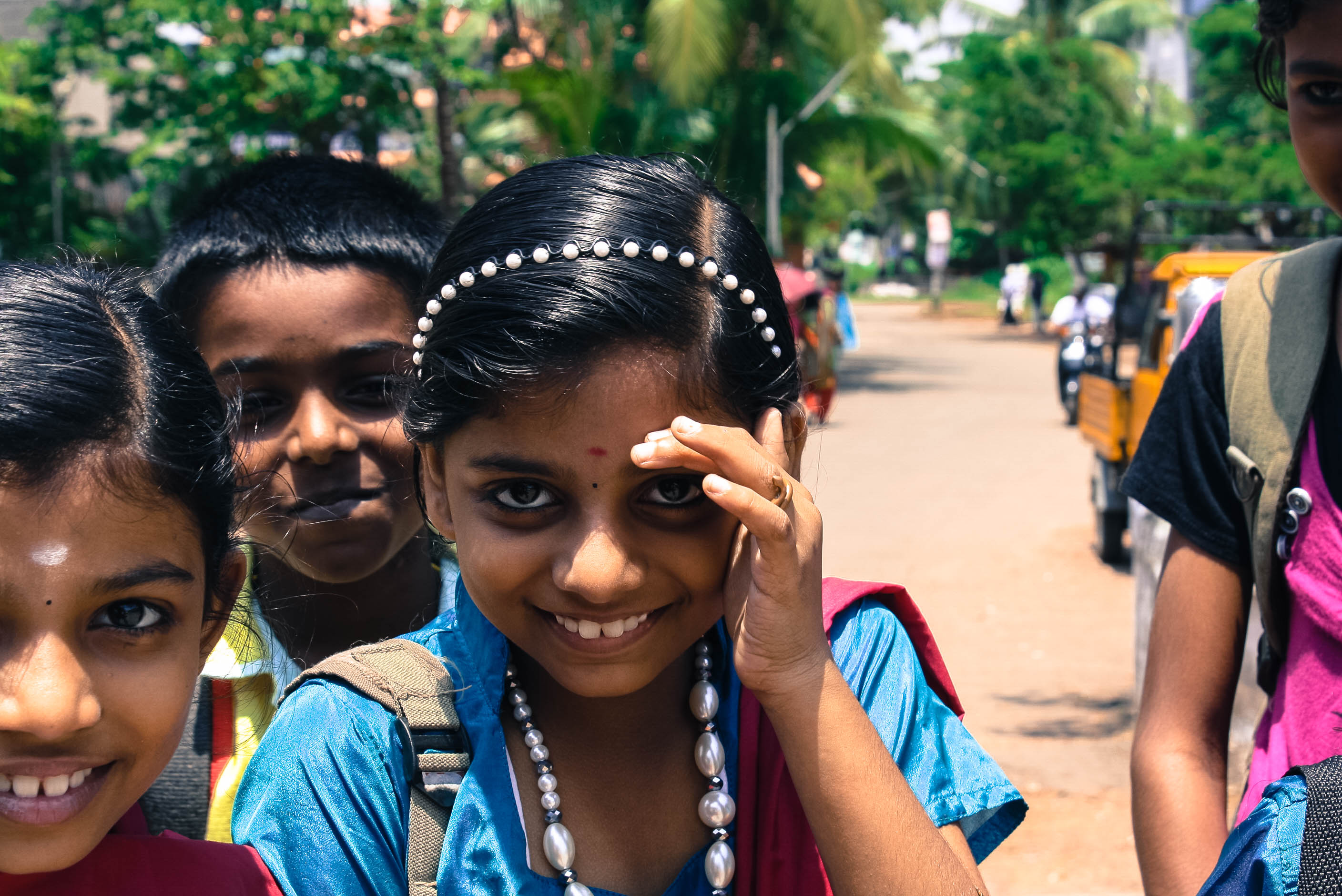 Ici, je me surprends à ne pas m’attarder sur les paysages. Je pense que de beaux paysages, il y en a partout. Alors oui, certains sont différents et la vue à l’IIMK me marque particulièrement. Je n’ai pourtant qu’une envie quand je voyage en Inde : prendre les gens en photo. Jamais je n’aurai pensé vouloir faire autant de portraits. Ce que je préfère c’est la photo au naturel, quand la, ou les personnes, ne se doutent de rien. J’ai alors pris des enfants, beaucoup d’enfants. Des parents et leurs enfants. Des gens dans la rue, des rues avec les expressions des personnes qui l’animent. Vous pouvez en voir certaines…des sourires communicatifs. Lors de mon retour en France j’ai l’impression qu’il me sera difficile de poursuivre cette collection. J’avais déjà commencé à prendre des enfants à la volée. Lorsque je me balade sur la plage de Calicut beaucoup d’enfants me courent après et des gens me suivent. Tous réclament des photos et me posent des questions. C’est si amusant.